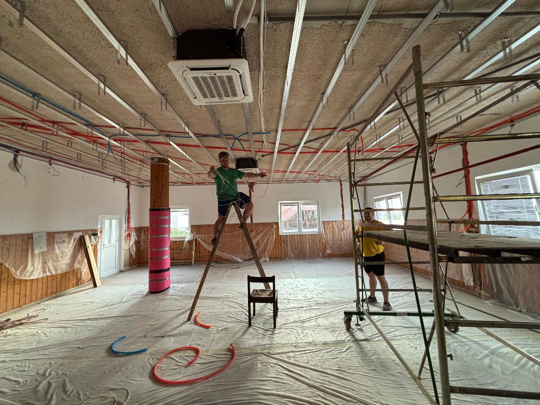 V mesecih juniju in juliju so bila izvedena pomembna elektroinštalacijska ter slikopleskarska dela, ki so bistveno prispevala k napredku projekta. Z deli bomo nadaljevali v oktobru, ko bo dvorana dobila še zaključne lepotne popravke. Korak za korakom se tako bližamo cilju, da bo prostor ponovno v polni meri služil srečevanju, druženju ter kulturnemu in družabnemu življenju.