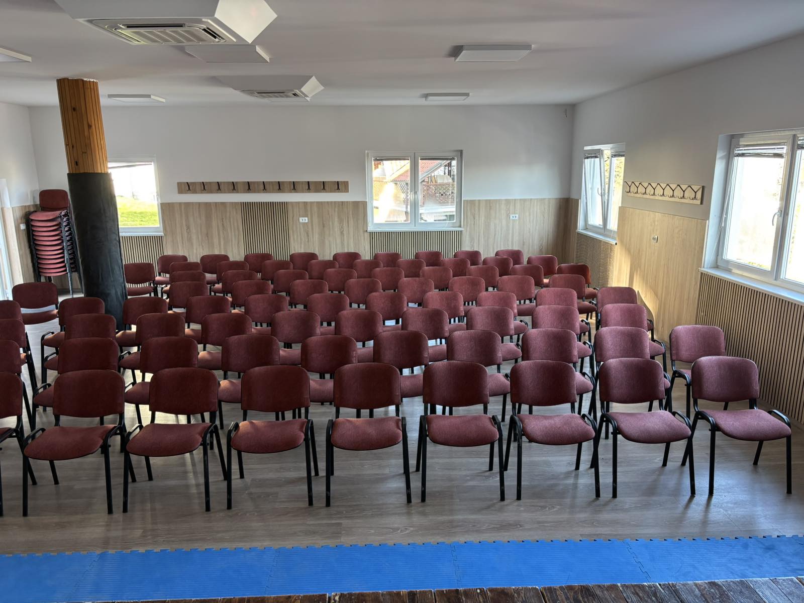 Naša dvorana je bila v letih 2025/2026 temeljito prenovljena in danes združuje sodoben videz, prijetno vzdušje ter funkcionalnost za različne vrste dogodkov. Namenjena je tako kulturnim prireditvam, predstavitvam in predavanjem kot tudi zasebnim praznovanjem, srečanjem in drugim zaključеnim družbam.